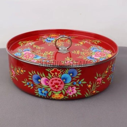 Hand Painted Round Steel Box