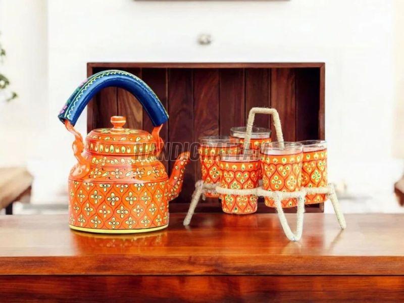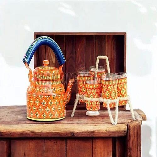 Home › Products › Tea Kettle › Orange Hand Painted Tea Kettle With Glass Set
